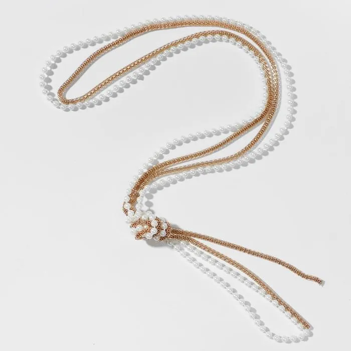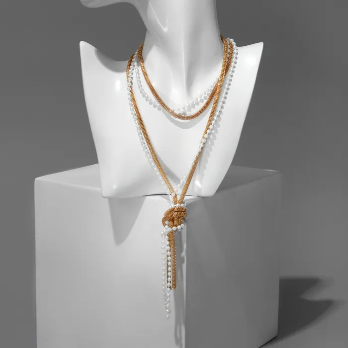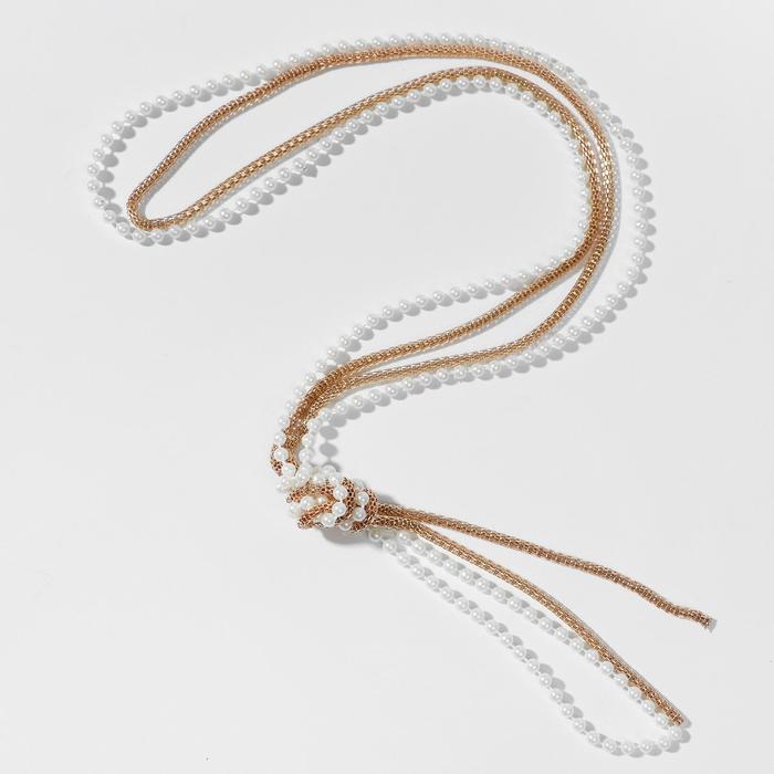Бусы «Трансформер» 2 нити (несколько способов носки), жемчужные, цвет бело-золотой ,118см — Характеристики