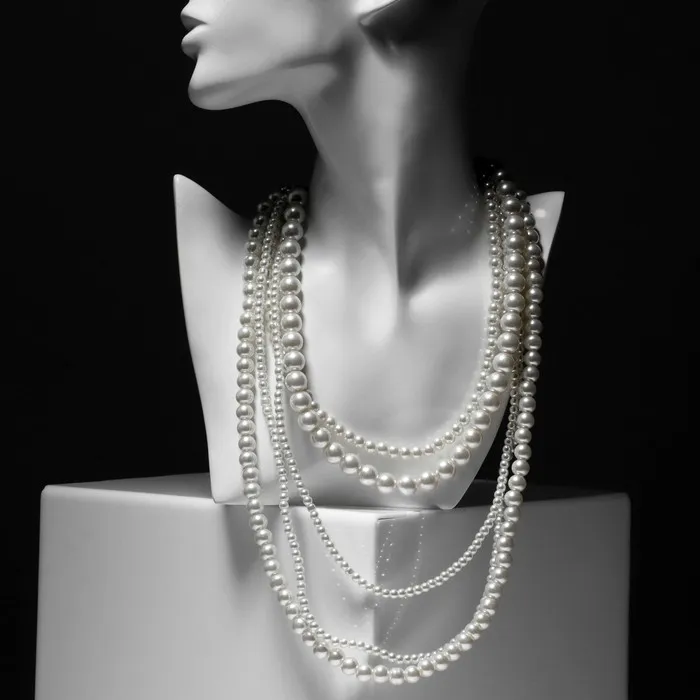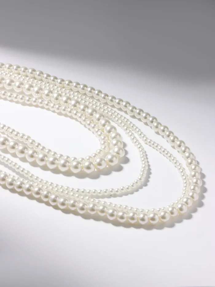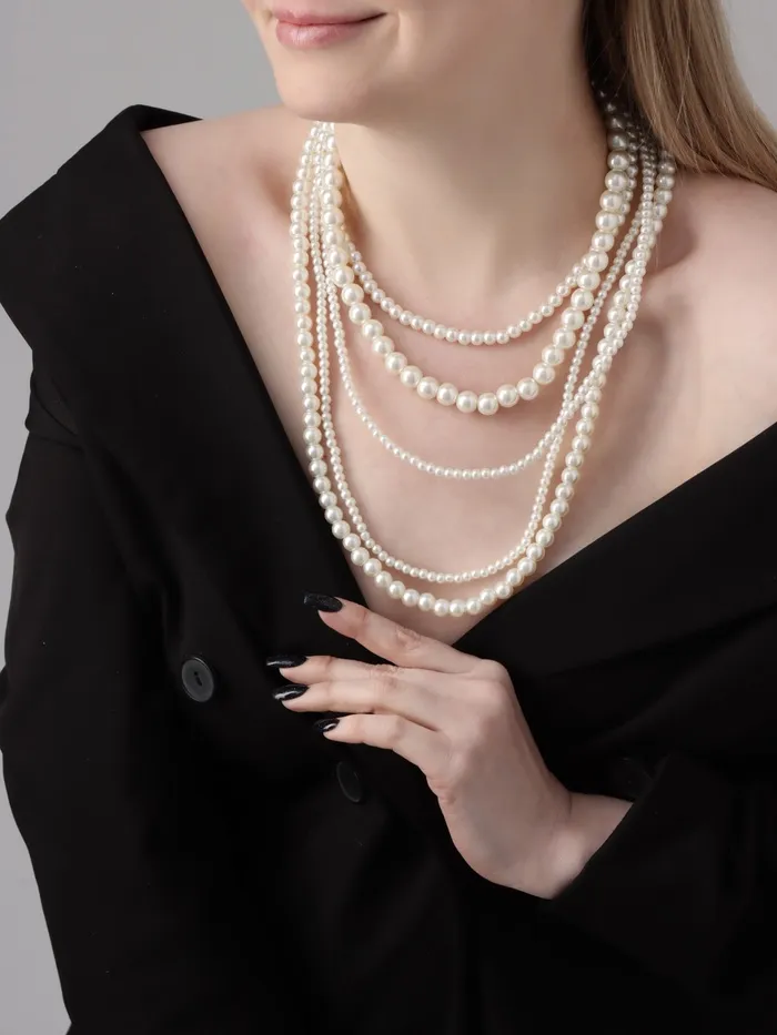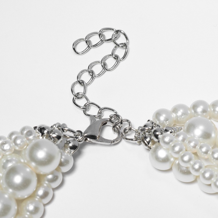 Бусы «Жемчуг» многоярусный 5 нитей, бусины №4, 6, 8, 10, цвет молочный в серебре, 70 см — Характеристики