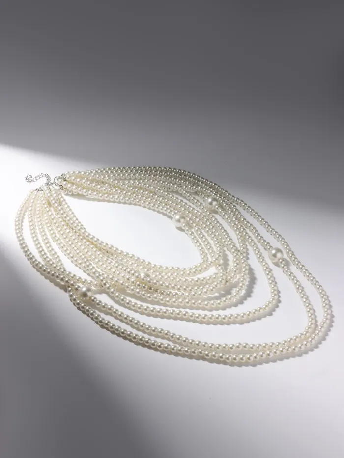 Бусы «Жемчуг» многоярусный 9 нитей, бусины №6, 14, цвет молочный в серебре, 70 см — Характеристики