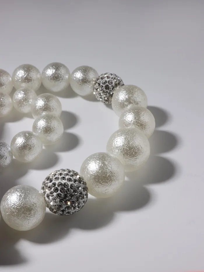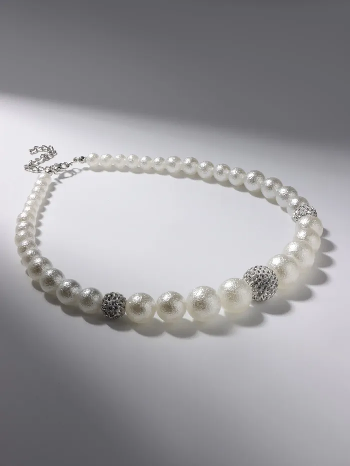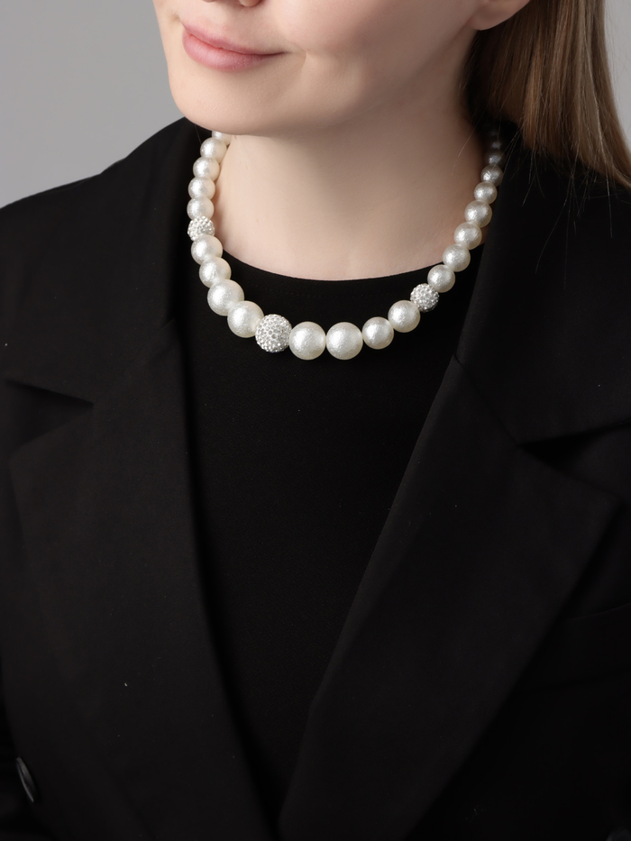 Бусы «Жемчуг» с шамбалой, текстура, бусины №8, 16, белые в серебре, 38 см — Характеристики