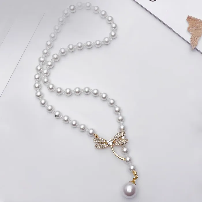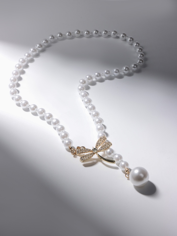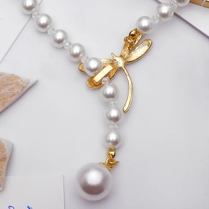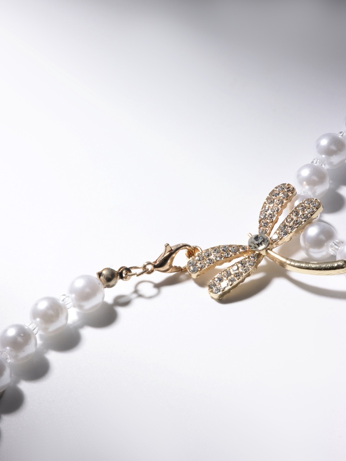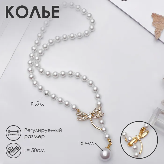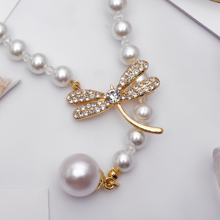 Бусы «Жемчужное» с расстёгивающимся элементом, стрекоза, шар №8.16, белые в золоте, L=50 см — Характеристики