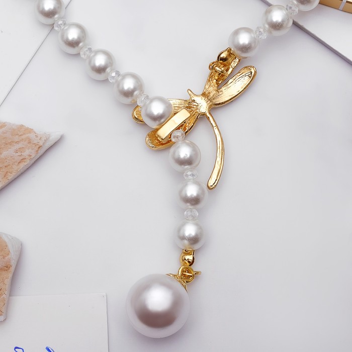 Бусы «Жемчужное» с расстёгивающимся элементом, стрекоза, шар №8.16, белые в золоте, L=50 см