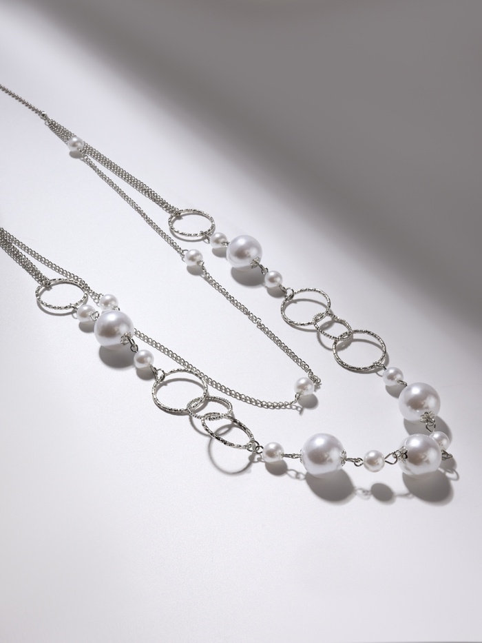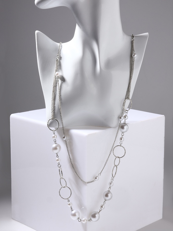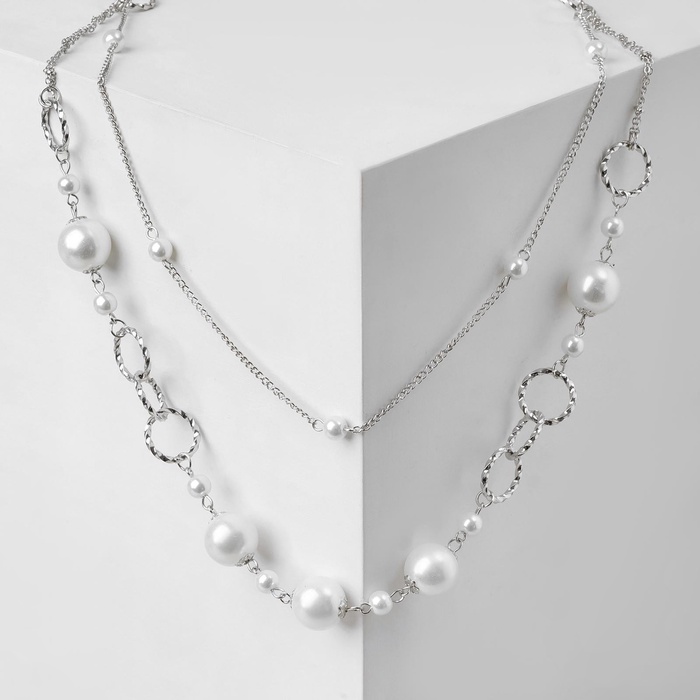 Бусы «Жемчужный мир» кольца с бусинами, белые в серебре, 90 см — Характеристики