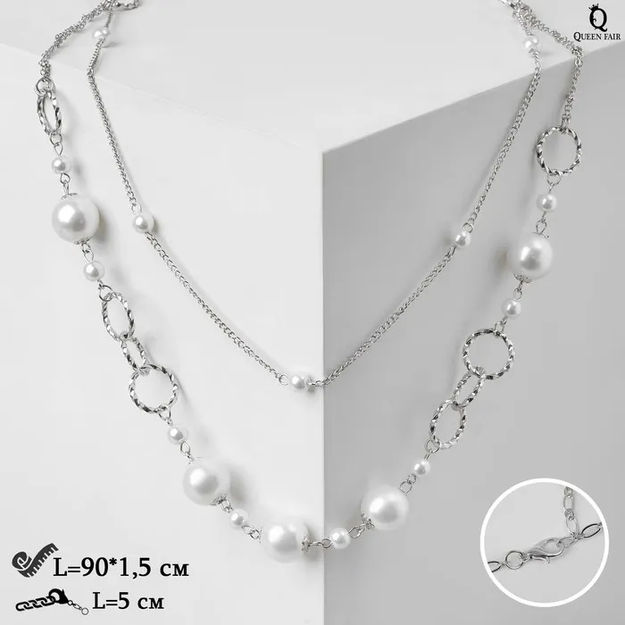 Бусы «Жемчужный мир» кольца с бусинами, белые в серебре, 90 см — Характеристики