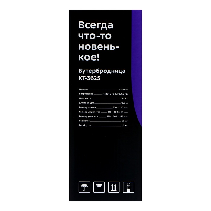 Бутербродница Kitfort КТ-3625, 750 Вт, антипригарное покрытие, чёрно-серебристая — Характеристики