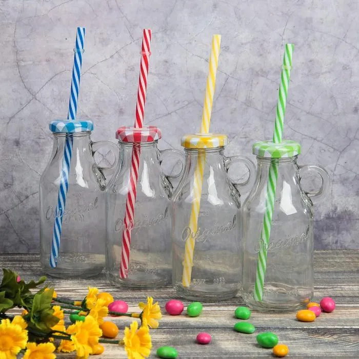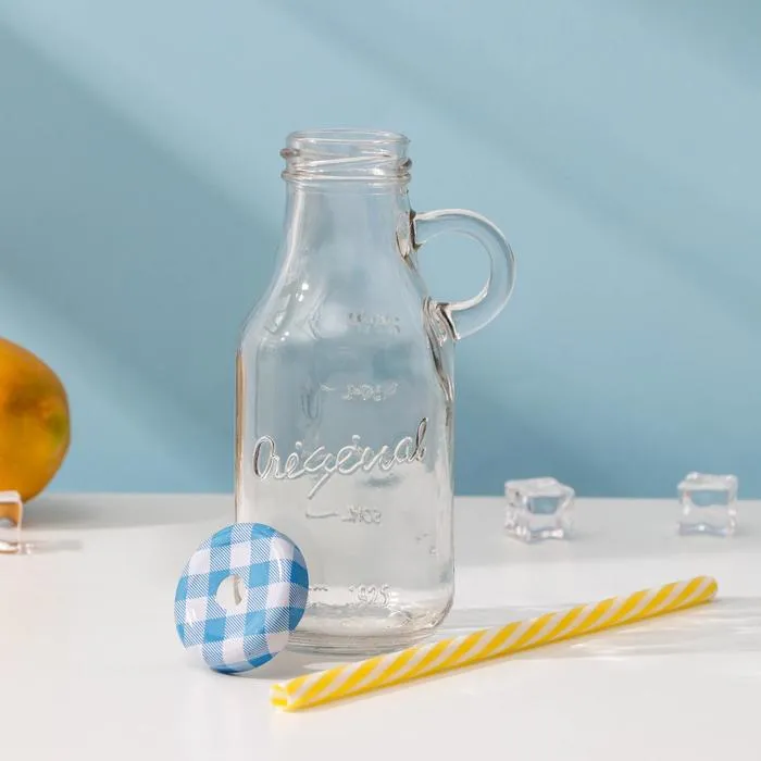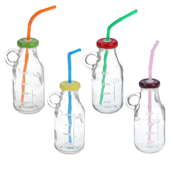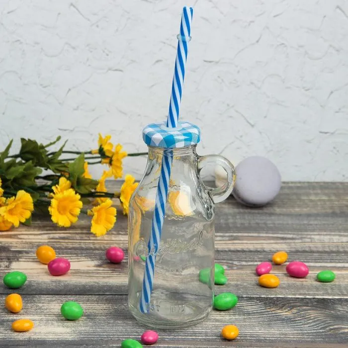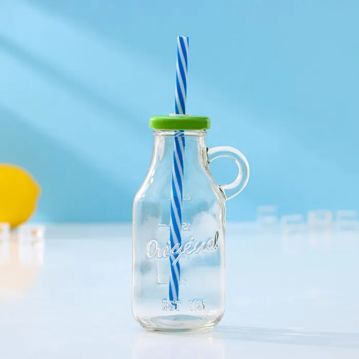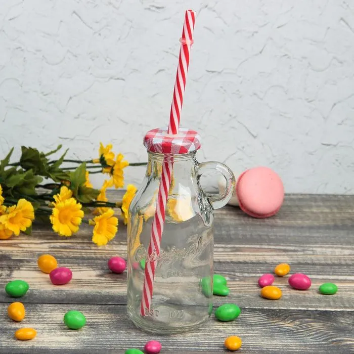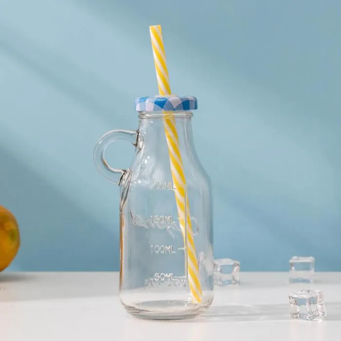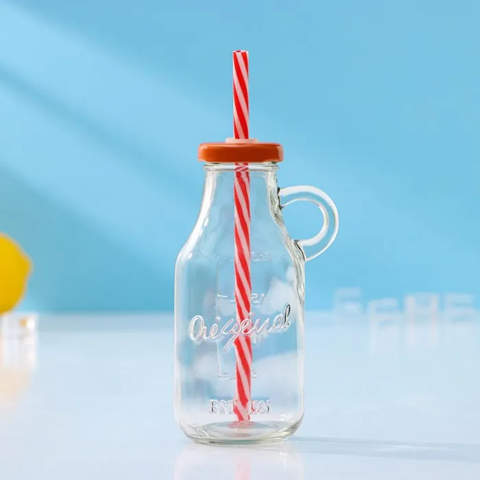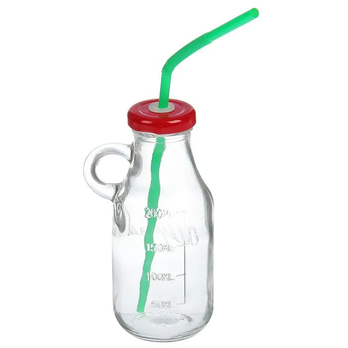 Бутыль с крышкой и трубочкой, 200 мл, 7.5×6×14.5 см, стекло, МИКС — Характеристики