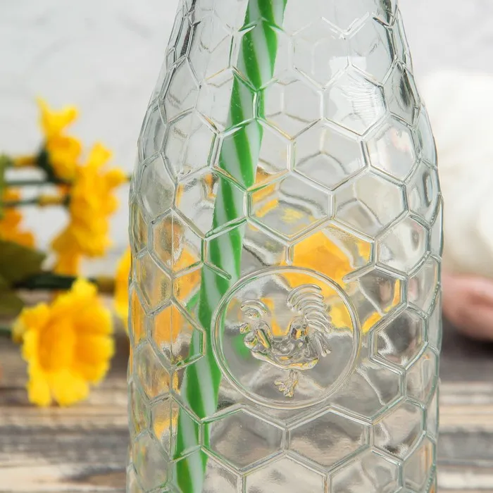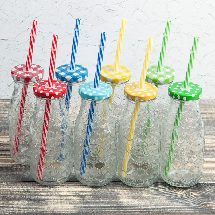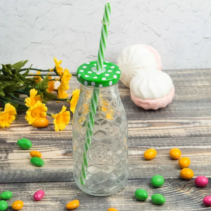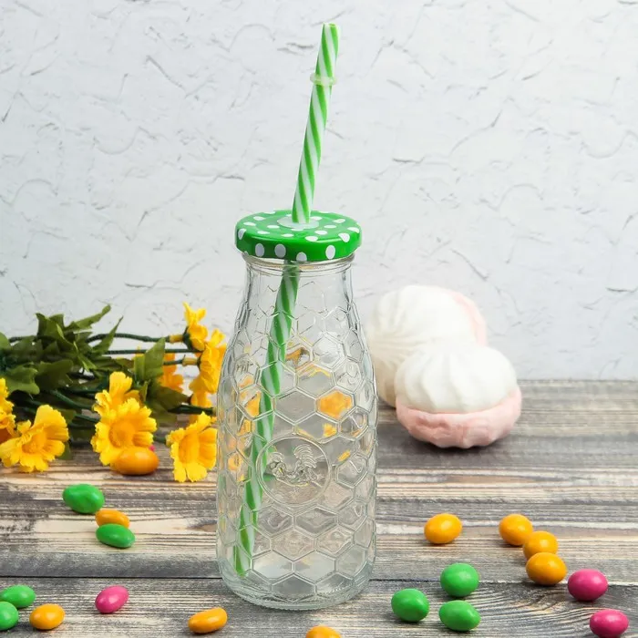 Бутыль с крышкой и трубочкой «Соты», 300 мл, 6.5×15.5 см, стекло, МИКС — Характеристики