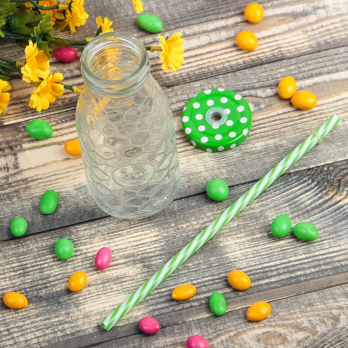 Бутыль с крышкой и трубочкой «Соты», 300 мл, 6.5×15.5 см, стекло, МИКС