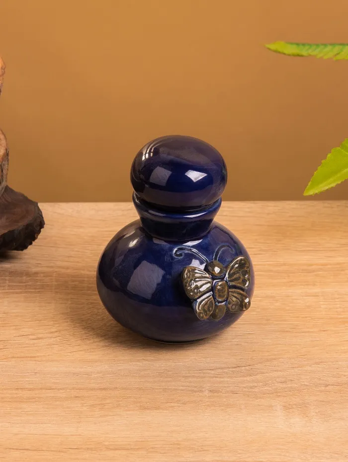 Сосуд для масла "Бабочка" керамика, цв. синий, 8х8х10 см