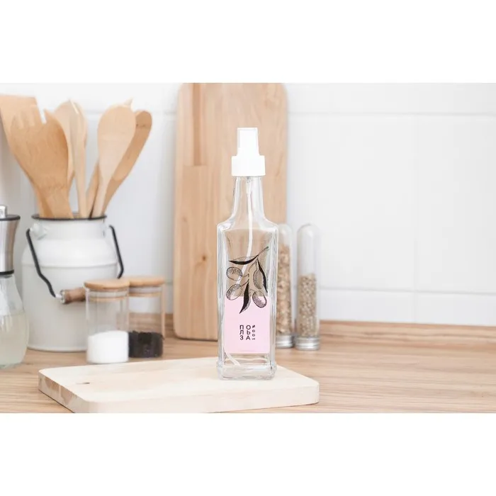 - Удобство использования: бутылка оснащена распылителем, который позволяет контролировать количество масла и равномерно распределять его на поверхности. Дозатор обеспечивает точное и аккуратное нанесение масла, предотвращая его разбрызгивание и экономя расход продукта.