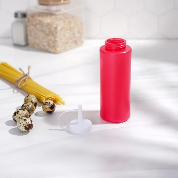 Бутылка для соуса Доляна, 350 мл, 6×19 см, пластик, красная — Характеристики