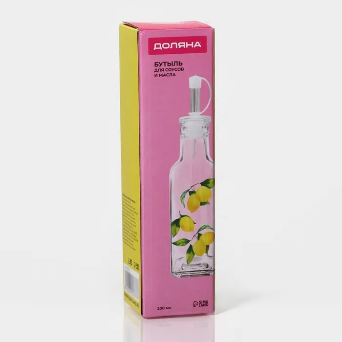 Бутылка для соусов и масла Доляна «Лимоны», 200 мл, 4.5×20 см, стекло, прозрачная — Характеристики