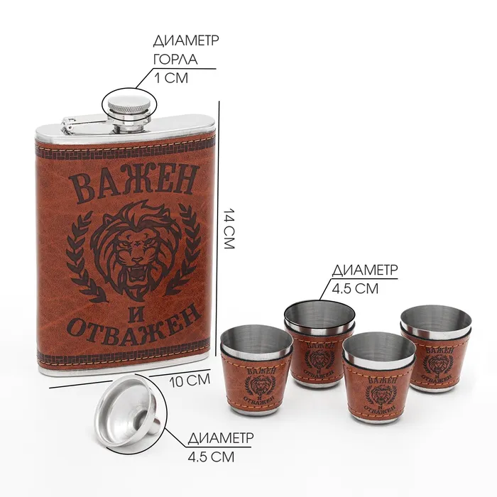 Подарочный набор «Важен и отважен»: фляжка 270 мл, 4 стопки, воронка