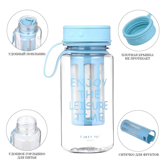 Бутылка для воды, 400 мл, с ситечком, 17.5×10.5 см, голубая — Характеристики