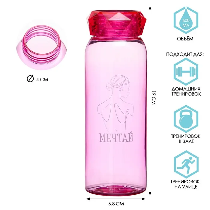 Бутылка для воды, 600 мл, "Мечтай" — Характеристики