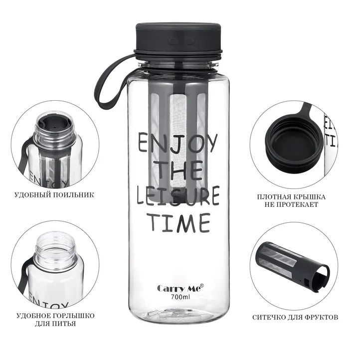 Бутылка для воды, 800 мл, 22 х 10.5 см, с ситом, черная — Характеристики