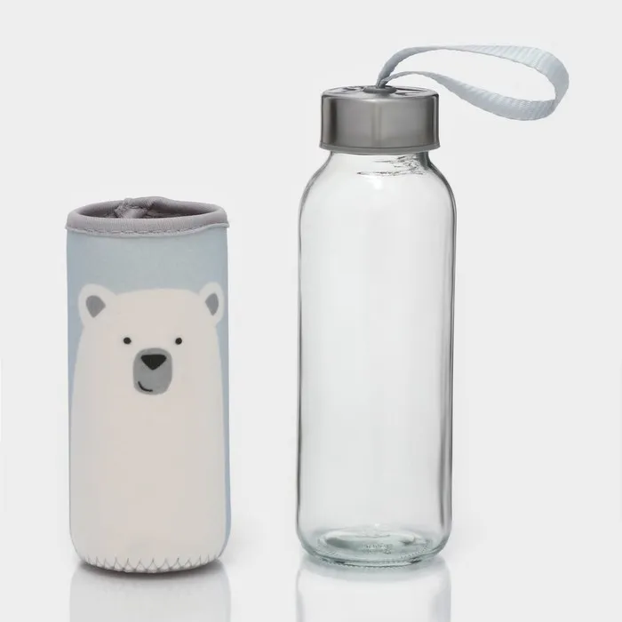 Бутылка для воды «Белый мишка», 300 мл, h=17 см, в чехле, стекло, голубая, прозрачная — Характеристики