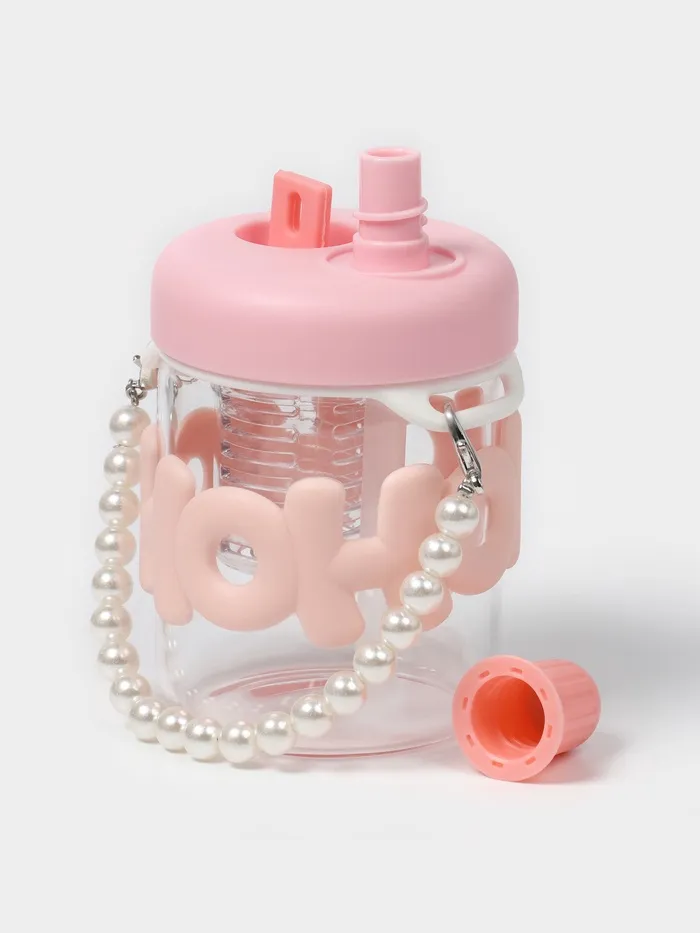 Розовая стеклянная бутылка объёмом 400 мл сочетает в себе практичность и лаконичный стиль. Прозрачный корпус с рельефной текстурой обеспечивает удобный хват, а встроенная трубочка облегчает питьё в движении.