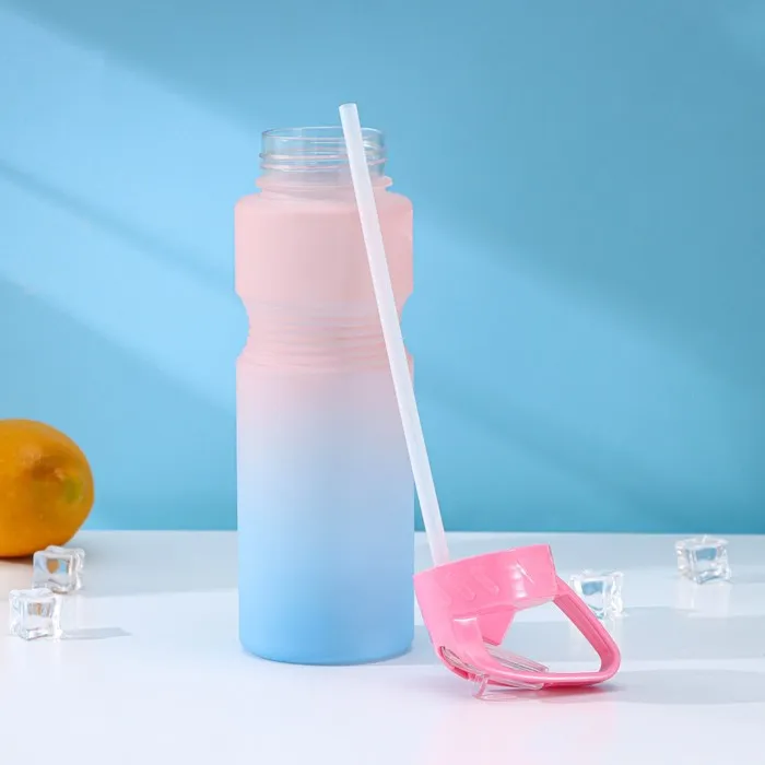 Бутылка для воды Доляна «Градиент», с трубочкой, 700 мл, 25×7×8 см, пластик, розовая/голубая — Характеристики