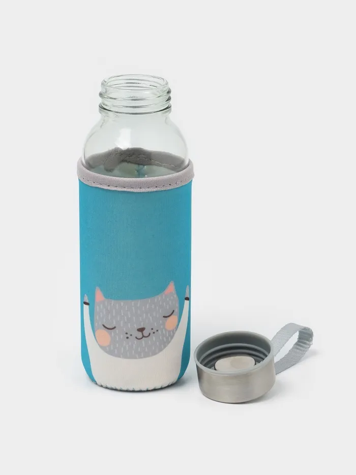 Бутылка для воды «Хитрый котик», 300 мл, h=17 см, в чехле, стекло, рисунок МИКС — Характеристики