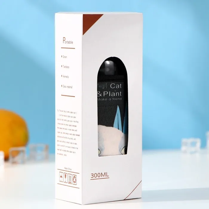 Компактная стеклянная бутылка объёмом 300 мл с оригинальным рисунком на чехле станет практичным аксессуаром для ежедневного использования.