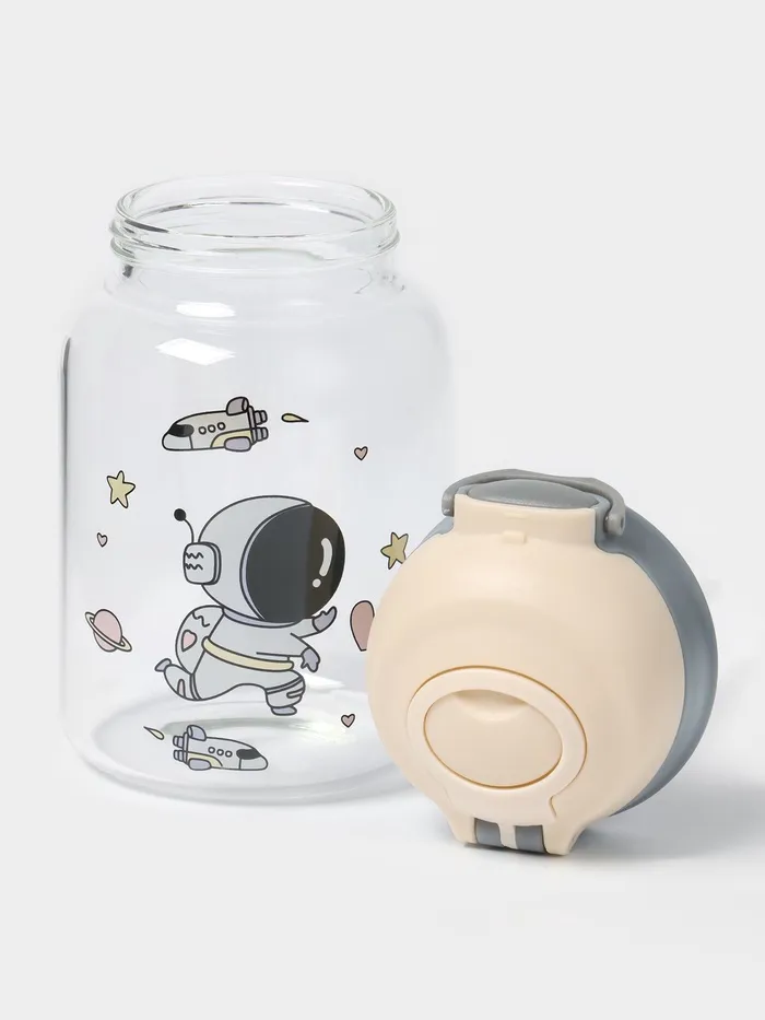 Бутылка для воды «Космонавты», 450 мл, 8.2×15 см, стекло, рисунок и МИКС — Характеристики
