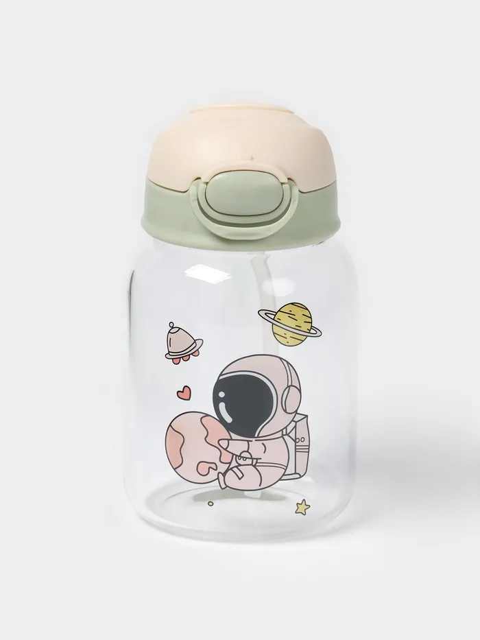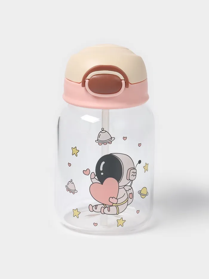 Стеклянная бутылка объёмом 450 мл с космическим дизайном станет отличным спутником для активных людей. Её прозрачный корпус и стильный рисунок делают её не только практичной, но и привлекательной.