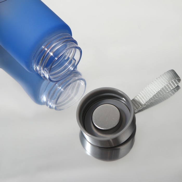 Изготовлена из качественного пластика с матовым покрытием, что добавляет элегантности и позволяет легко удерживать бутылку в руках. Металлическая крышка с удобным подвесом обеспечивает надежную герметичность и позволяет прикрепить бутылку к рюкзаку или сумке, освобождая руки для других дел.