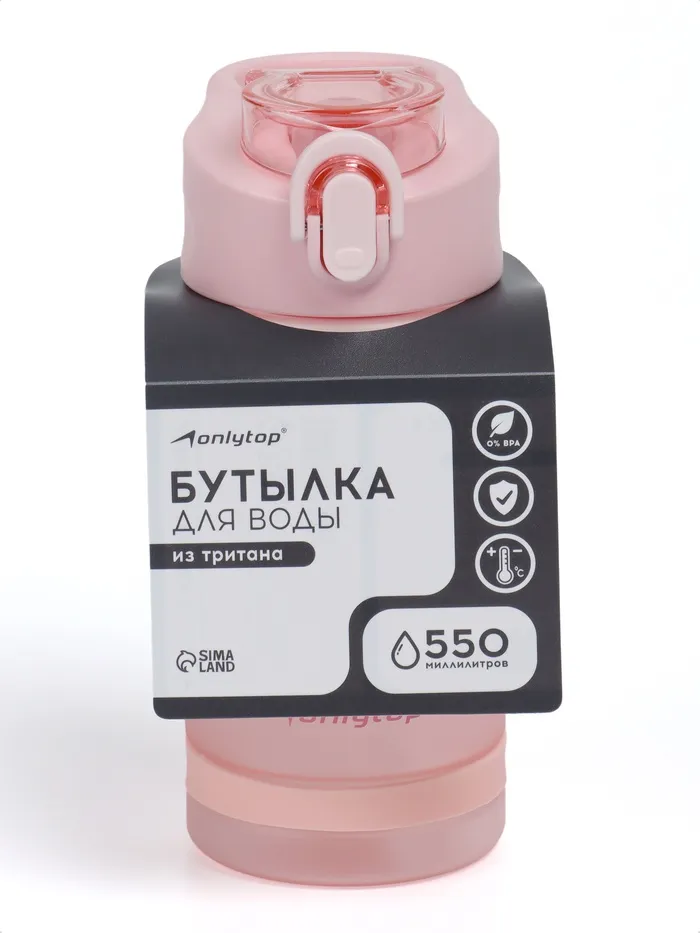 Бутылка для воды Onlytop, 550 мл, цвет розовый