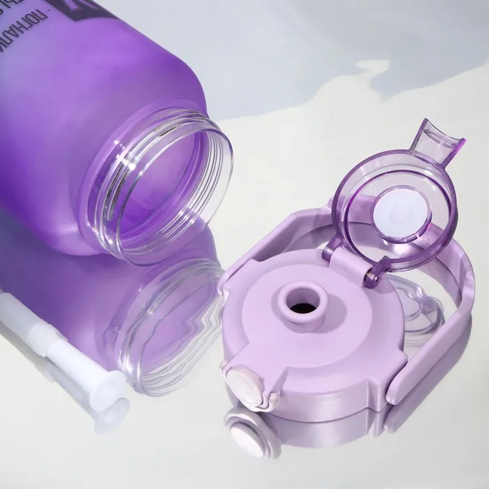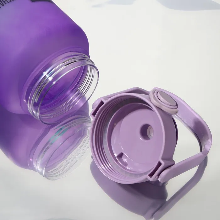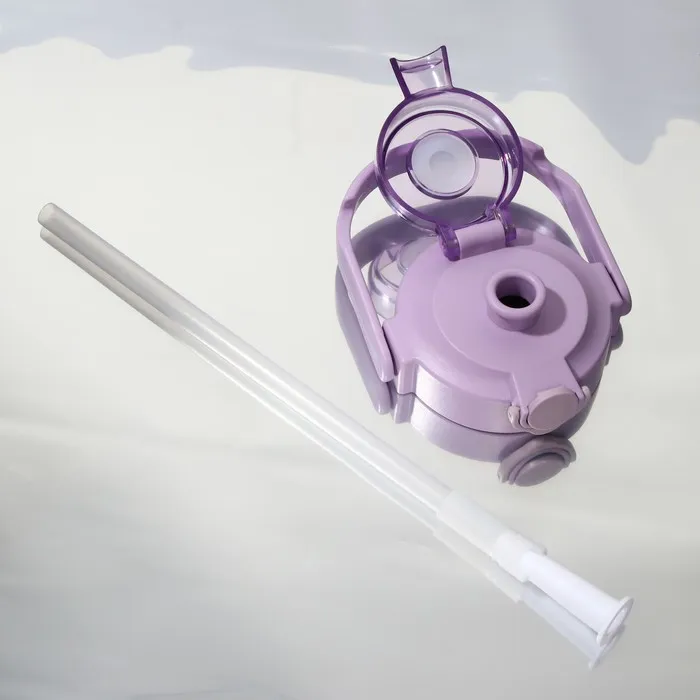 Изготовленная из качественного пластика с матовым покрытием, бутылка выглядит стильно и современно. Прикольные надписи на корпусе добавляют игривости и поднимут настроение. Удобная ручка на крышке делает её легко переносимой, а внутреняя трубочка обеспечивает комфортное питье без необходимости открывать крышку.