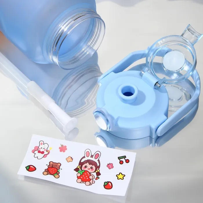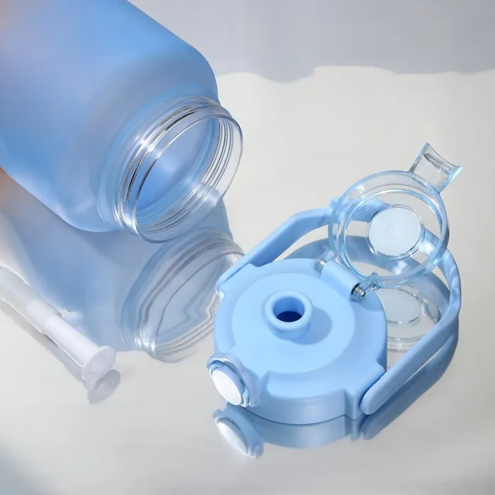 Изготовленная из качественного пластика с матовым покрытием, бутылка выглядит стильно и современно. Прикольные надписи на корпусе добавляют игривости и поднимут настроение. Удобная ручка на крышке делает её легко переносимой, а внутреняя трубочка обеспечивает комфортное питье без необходимости открывать крышку.