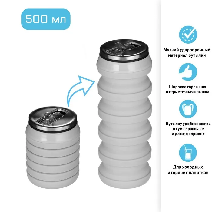 Бутылка для воды складная, 500 мл, силиконовая — Характеристики