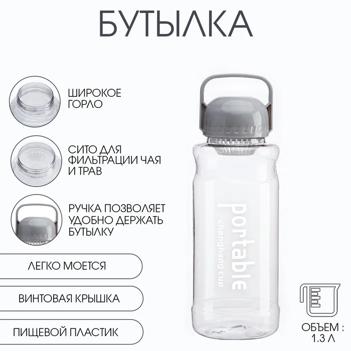 Бутылка для воды спортивная прозрачная, 1.3 л, Portable — Характеристики