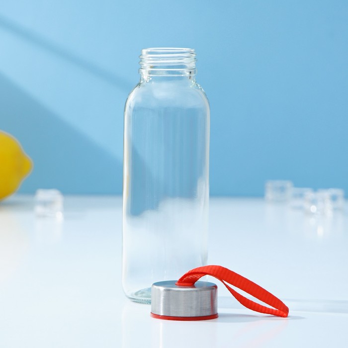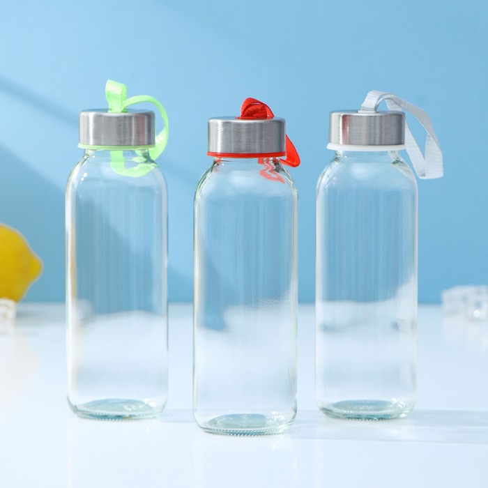 Бутылка для воды стеклянная «Лидо», 300 мл, h=17 см, цвет ремешка МИКС — Характеристики