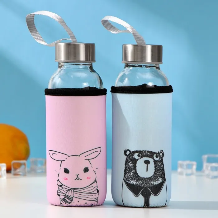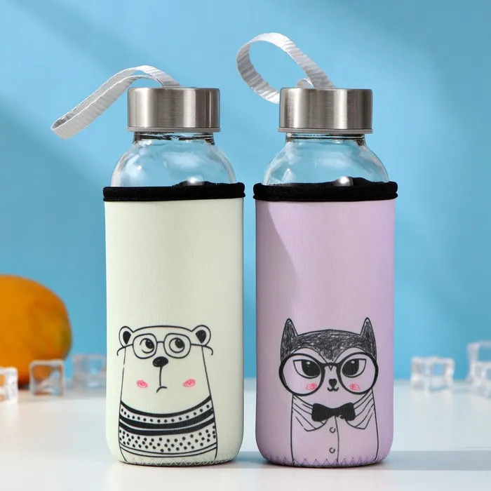 Бутылка для воды стеклянная в чехле «Лучшие друзья», 300 мл, h=16,5 см, рисунок МИКС — Характеристики