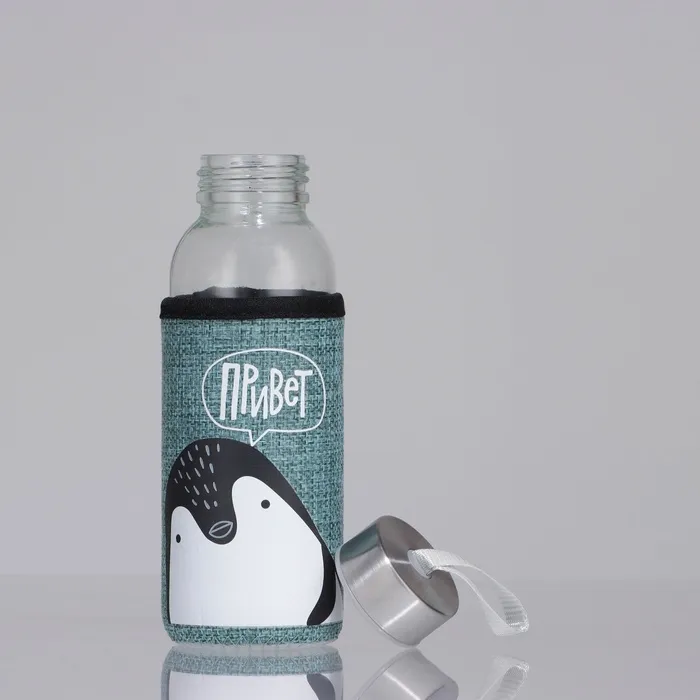 Комфортное и лёгкое использование обеспечивается прочным стеклом, которое сохраняет чистый вкус ваших напитков. Чехол защищает бутылку от повреждений и предотвращает скольжение, а металлическая крышка с удобным подвесом обеспечивает надёжную герметичность, позволяя вам не волноваться о протечках.
