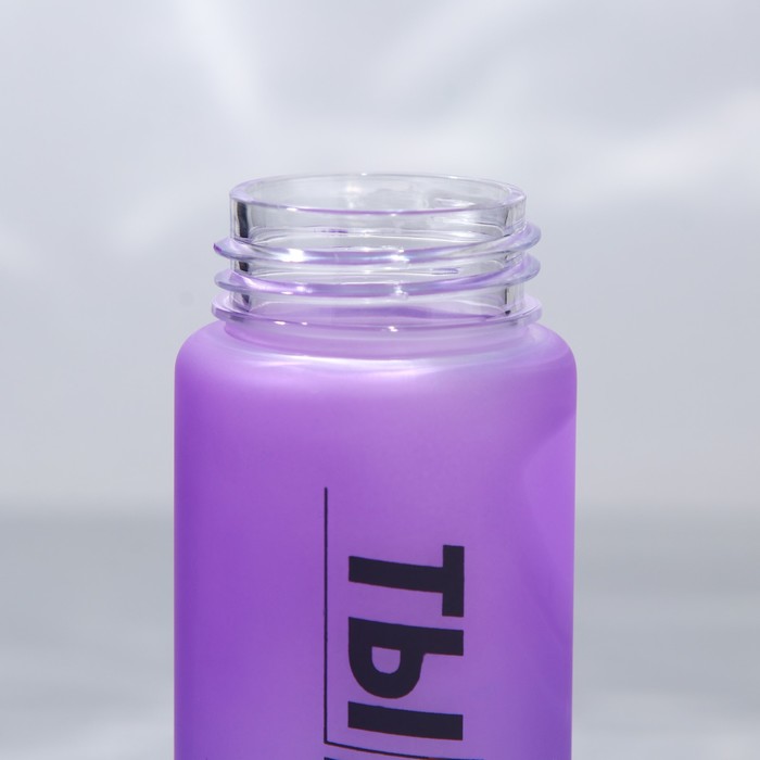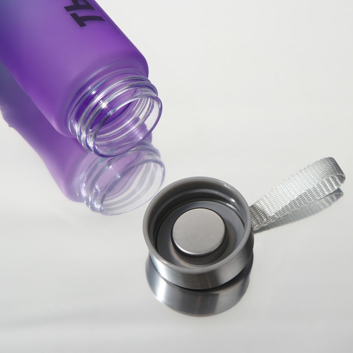 Изготовлена из качественного пластика с матовым покрытием, что добавляет элегантности и позволяет легко удерживать бутылку в руках. Металлическая крышка с удобным подвесом обеспечивает надежную герметичность и позволяет прикрепить бутылку к рюкзаку или сумке, освобождая руки для других дел.
