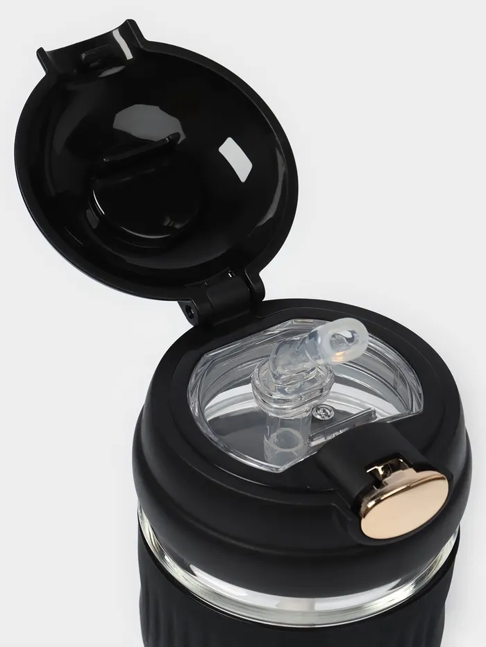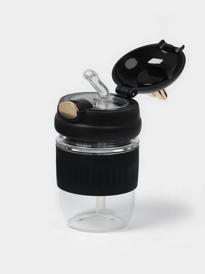 - С трубочкой — удобно пить в движении и минимизировать проливание.