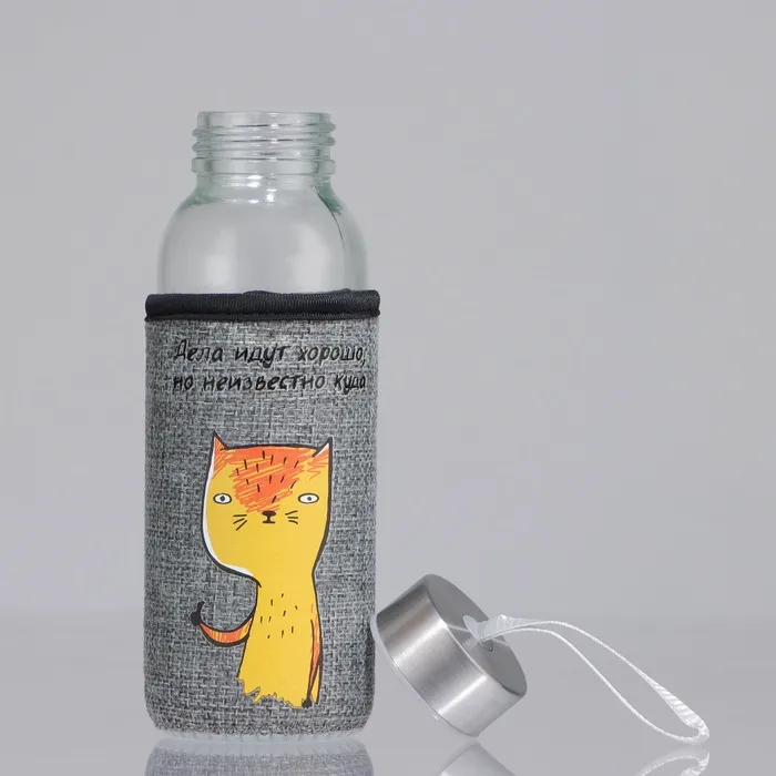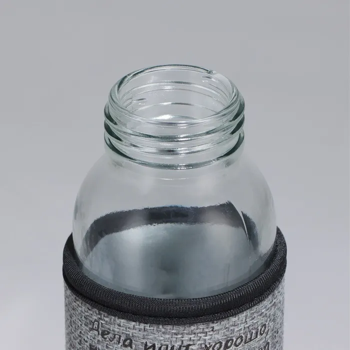 Комфортное и лёгкое использование обеспечивается прочным стеклом, которое сохраняет чистый вкус ваших напитков. Чехол защищает бутылку от повреждений и предотвращает скольжение, а металлическая крышка с удобным подвесом обеспечивает надёжную герметичность, позволяя вам не волноваться о протечках.