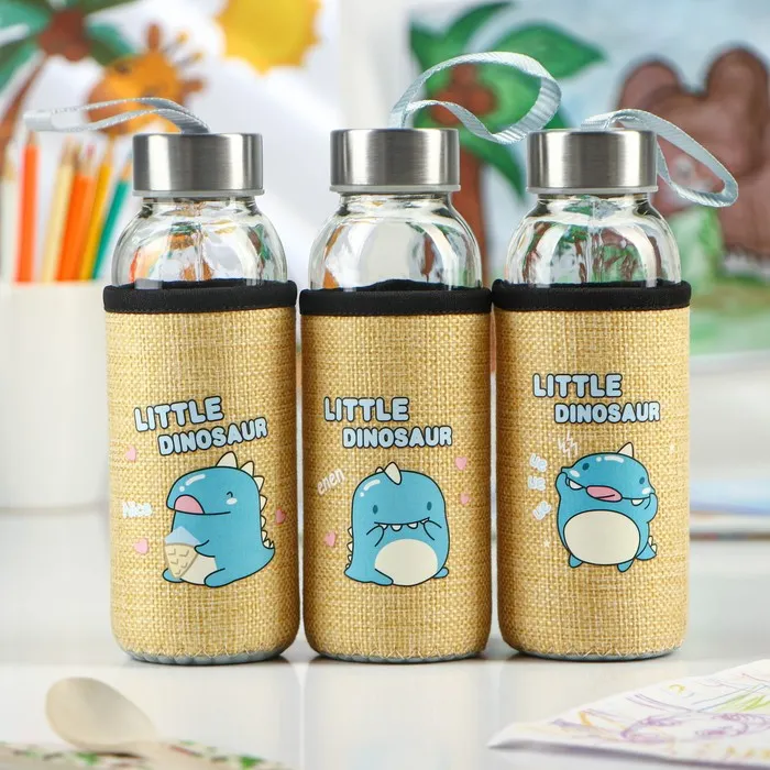 Бутылка для воды в чехле «Дино», 300 мл, h=17 см, стекло, рисунок МИКС — Характеристики