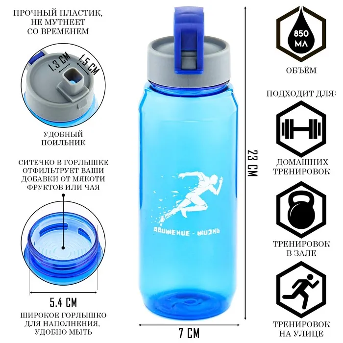 Покорите мир активного образа жизни с бутылкой для воды от торговой марки "Сима-Ленд"! Эта стильная и функциональная бутылка станет вашим надежным спутником на протяжении всего дня — будь то занятия спортом, походы или просто повседневные дела.