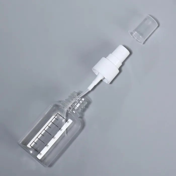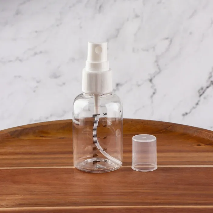 Бутылочка для хранения, с распылителем, со шкалой деления, 50 мл, цвет белый/прозрачный