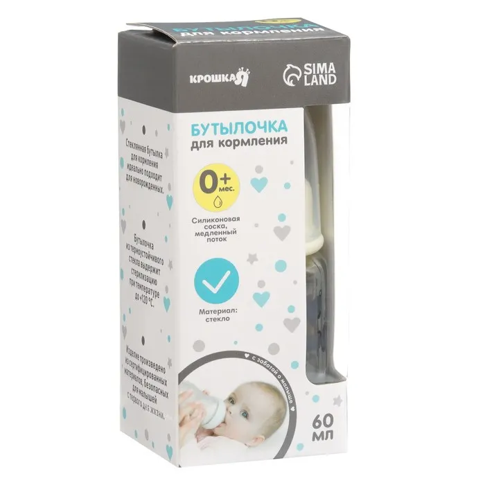 Бутылочка для кормления Basic, классическое горло, стекло, медленный поток., 60 мл., от 0 мес., белая — Характеристики