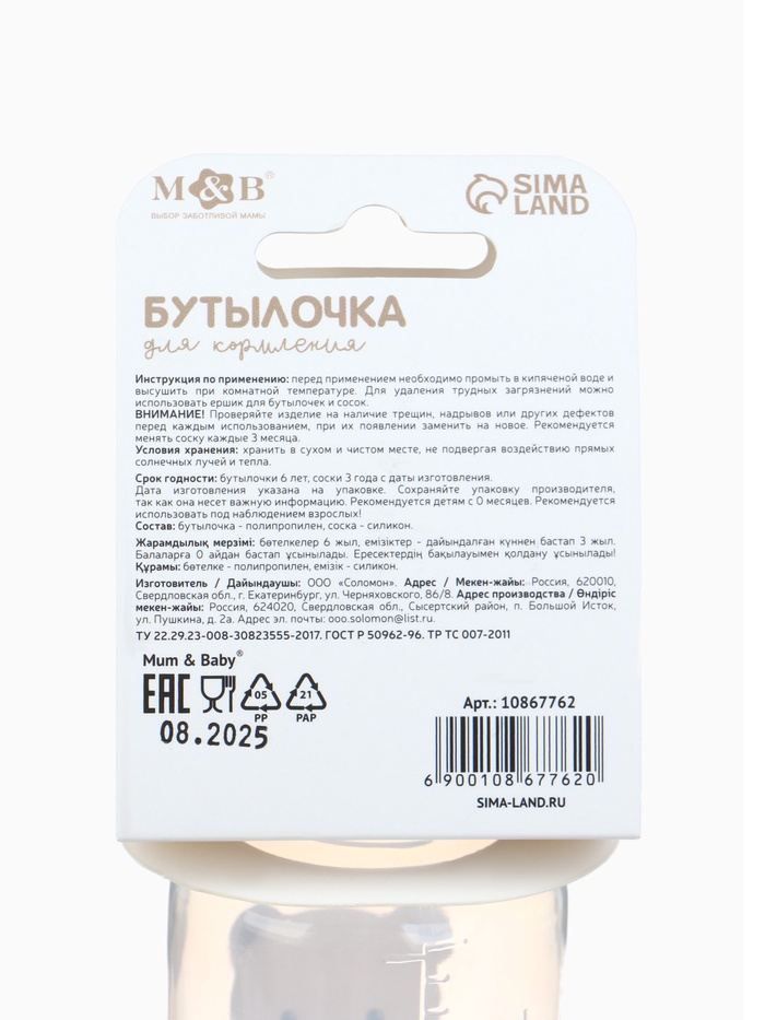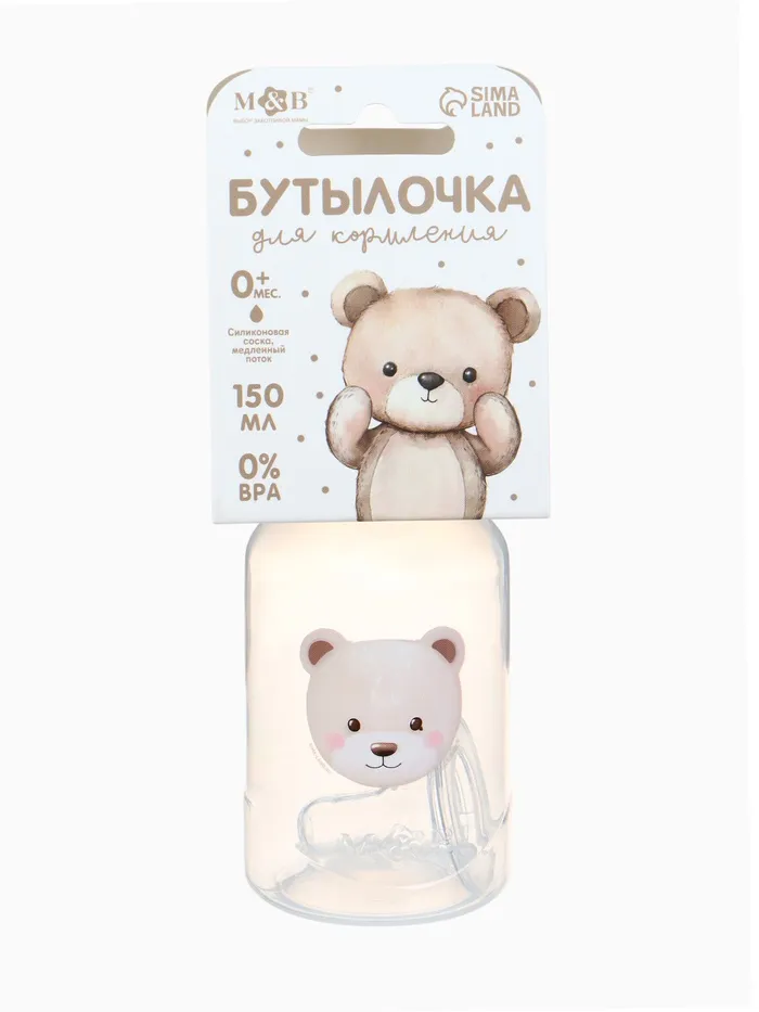 Бутылочка для кормления Bear 150 мл, цилиндр, бежевый Mum&Baby — Характеристики