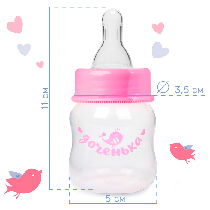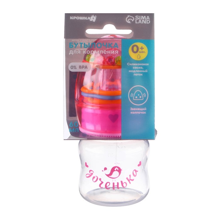 Бутылочка для кормления «Доченька», классическое горло, с погремушкой, 60 мл., от 0 мес., цвет розовый — Характеристики