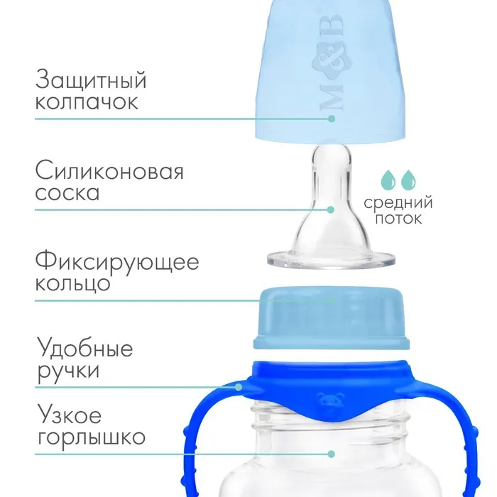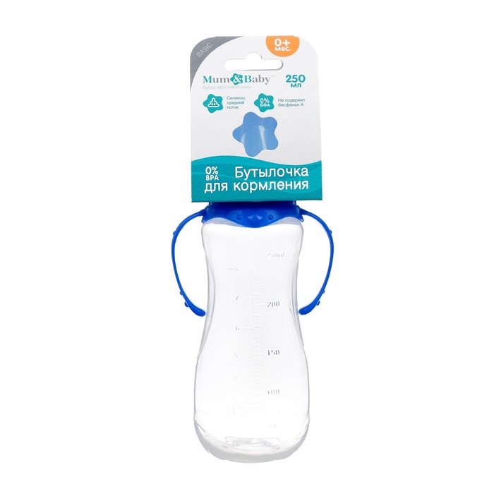 Бутылочка для кормления, классическое горло, с ручками, 250 мл., от 3 мес., цвет синий — Характеристики