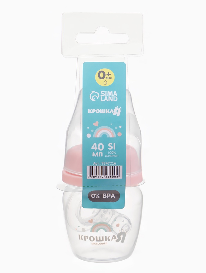 Бутылочка для кормления Крошка Я Basic, классическое горло, от 0 мес., 60 мл (мерная шкала до 40 мл), розовый — Характеристики