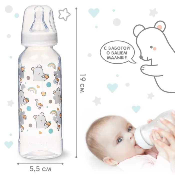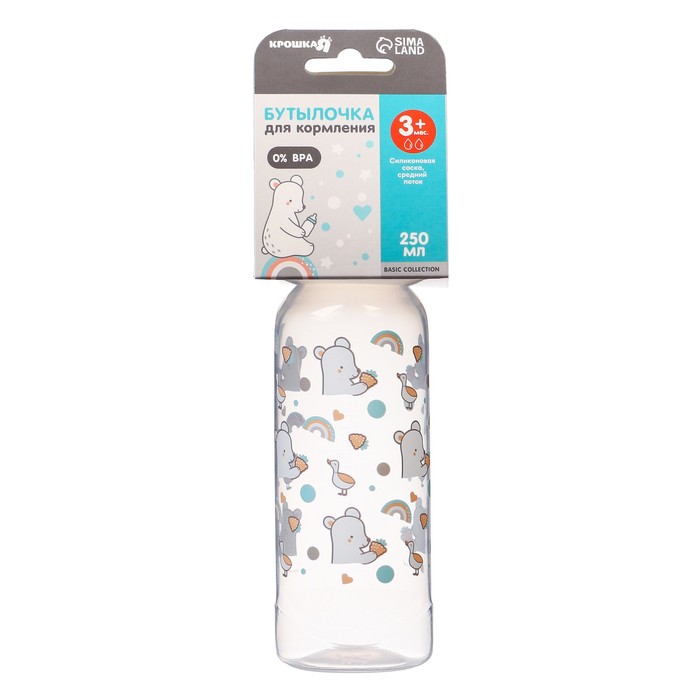 Бутылочка для кормления Крошка Я Basic «Медвежонок», классическое горло, от 3 мес., 250 мл., белый/бирюзовый — Характеристики