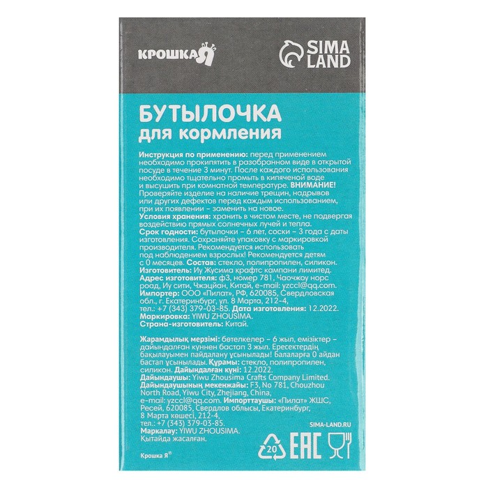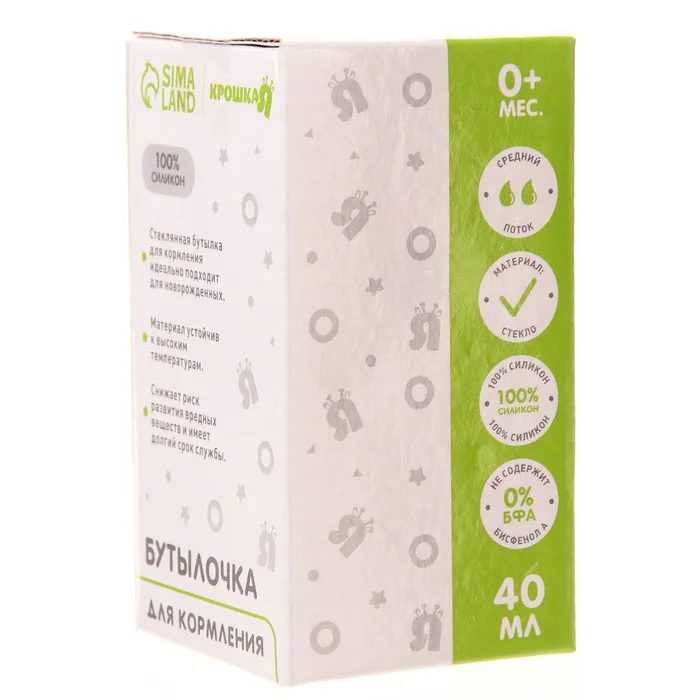 Бутылочка для кормления Крошка Я, классическое горло, от 0 мес., 40 мл., стеклянная, МИКС — Характеристики