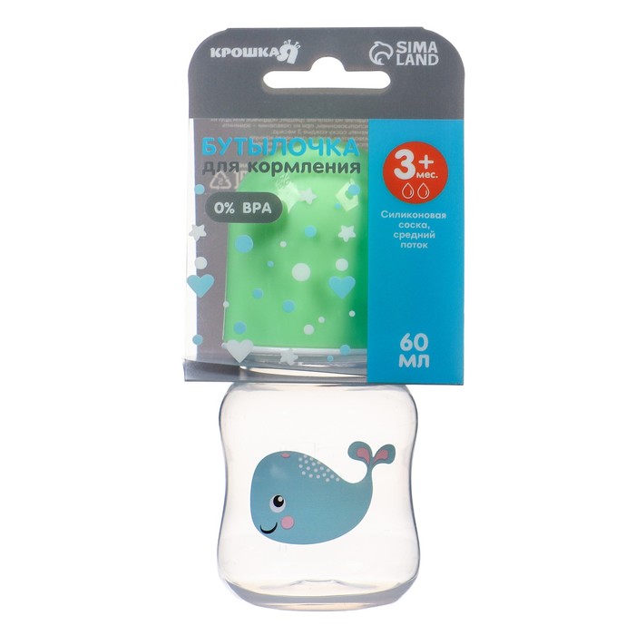 Бутылочка для кормления Крошка Я, классическое горло, от 3 мес., 60 мл., зеленый — Характеристики